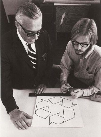 You’ve seen it a million times, appearing on cardboard milk containers, on aluminum cans, on yogurt containers, or shampoo bottles. The well-known mark was originally designed by Gary Anderson, a 23-year-old University of Southern California architecture student for a design competition to mark recycled paper products. The competition was launched by Container Corporation of America to mark the first Earth Day. Anderson submitted three entries as a step-wise refinement of his simple, and strong graphic idea of three arrows chasing each other in an endless loop.